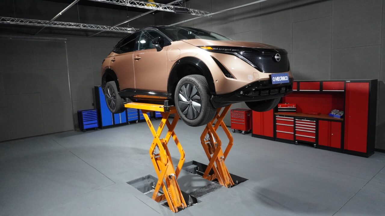 O início do serviço requer a elevação da parte dianteira do veículo em elevador ou com apoio seguro em cavaletes, mantendo as rodas suspensas. Em seguida, a bateria deve ser desligada, respeitando um intervalo mínimo de cinco minutos após o desligamento da ignição para permitir o adormecimento completo da rede elétrica.