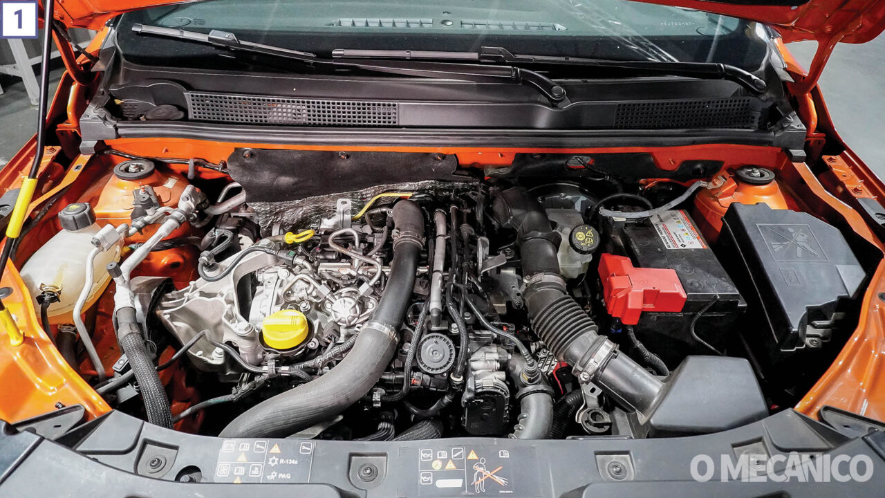 No Tera, por outro lado, a Volkswagen optou por um cofre mais protegido por coberturas plásticas e dutos que, apesar de manterem melhor vedação térmica e acústica, exigem pequenos desmontes adicionais para chegar a itens de rotina, como o filtro de ar ou os injetores (2). “É um padrão da VW, pensado em durabilidade e vedação, mas na oficina a gente sente que gasta um pouco mais de tempo para chegar no que precisa”, acrescenta Cleyton.