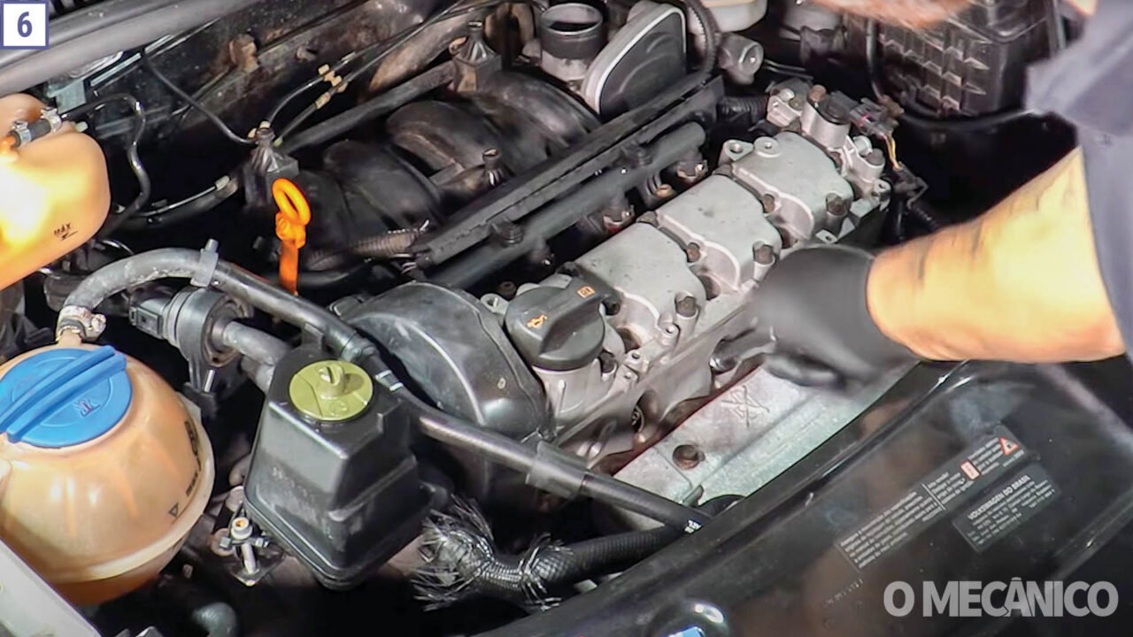Depois de sair do filtro (4), o óleo a pressão segue diretamente para o bloco do motor, entrando através da conexão (6), alimentando diretamente todo o circuito de lubrificação interna do motor com suas respectivas galerias.