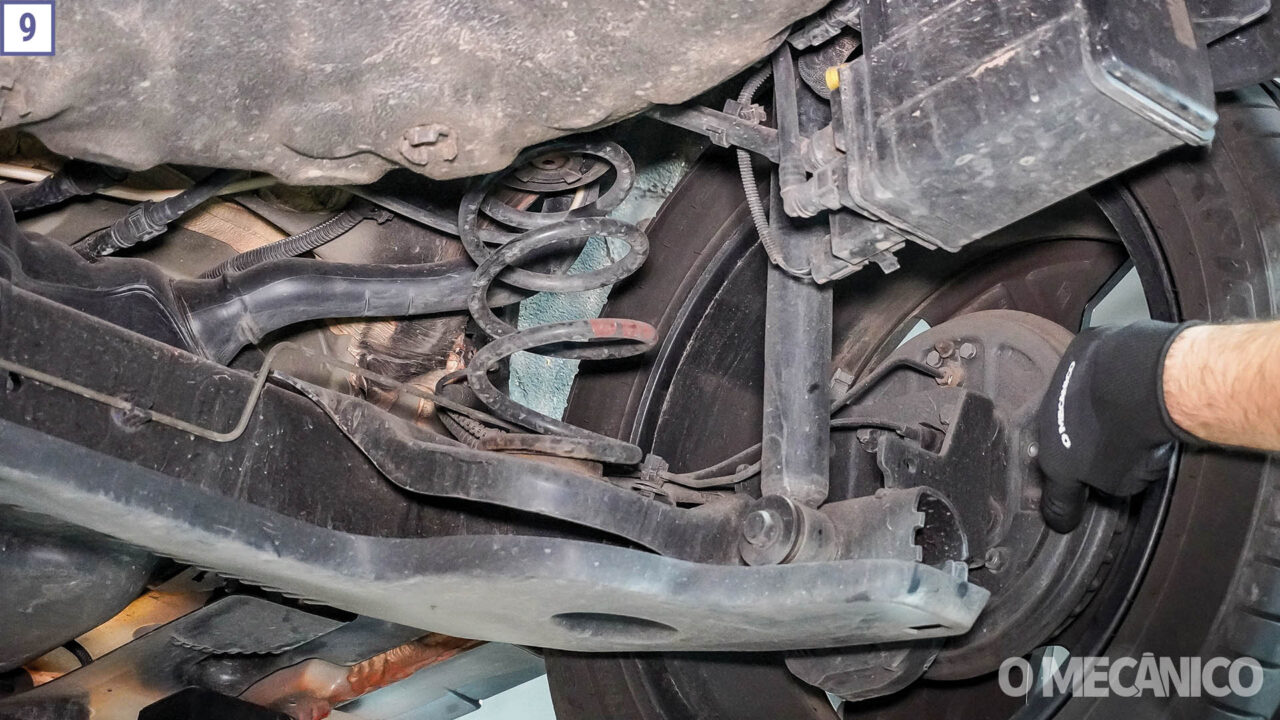 Na suspensão dianteira, ambos utilizam McPherson, mas o Kardian oferece acesso mais simples às bandejas e pivôs (7), enquanto o Tera possui alguns componentes mais protegidos, o que pode aumentar levemente o tempo de serviço (8). No eixo traseiro, ambos utilizam suspensão de eixo de torção (9 e 10), de concepção simples, mas no Kardian a substituição dos amortecedores traseiros, dependendo da versão, exige a remoção de parte do acabamento interno do porta-malas.