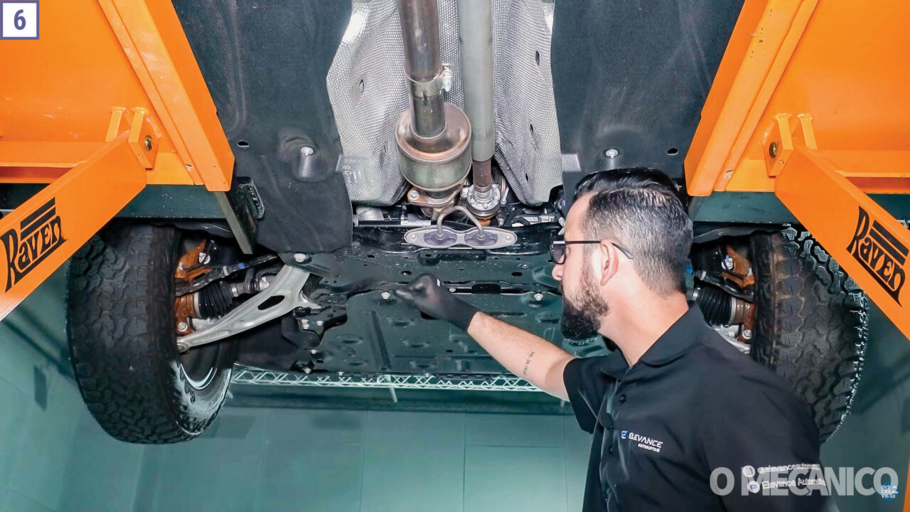 Debaixo do veículo, a Tremor segue a proposta off-road e apresenta um protetor de alta resistência, além de painéis inferiores que fecham boa parte do conjunto mecânico (5). Isso traz maior segurança aos componentes, mas exige a remoção das proteções para serviços como troca de óleo. Cleyton resume bem o conjunto ao afirmar que “é um baita protetor de cárter. Não é daqueles simples, é muito robusto mesmo”.