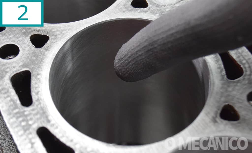2) A rugosidade certa do brunimento é crucial para o sucesso da manutenção. Thiago explica que, se a parede dos cilindros estiver mais lisa do que o necessário, o filme de óleo para lubrificar o movimento do pistão não vai se formar apropriadamente. Já se a parede estiver muito rugosa, os anéis do pistão serão afetados porque sofrerão desgaste prematuro por “quebrarem” os picos mais agudos do brunimento durante o assentamento do motor.