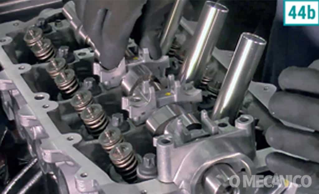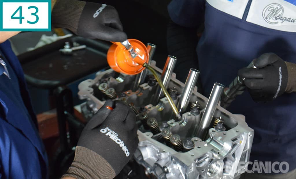 43) Lubrifique os mancais de apoio no cabeçote do eixo de comando de válvulas.