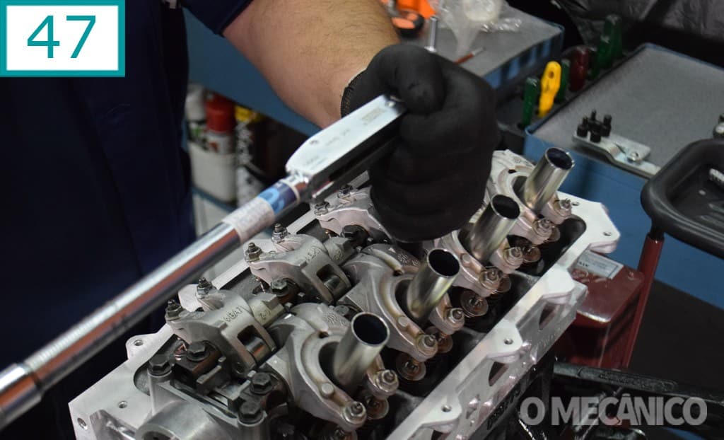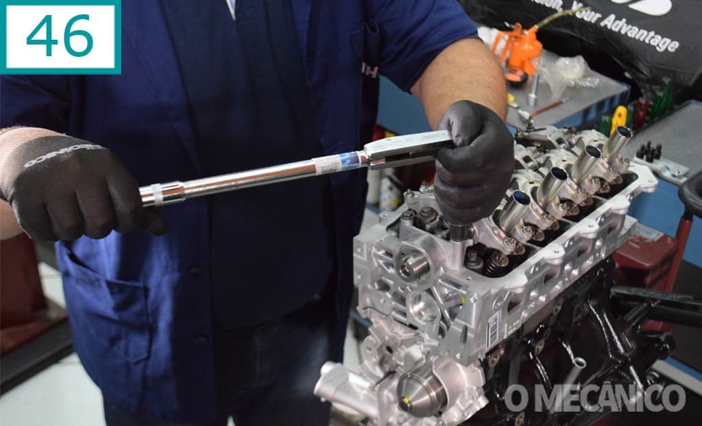 46) Os dois parafusos “externos” do mancal nº1 do eixo de comando possuem torque de aperto de 9 Nm.