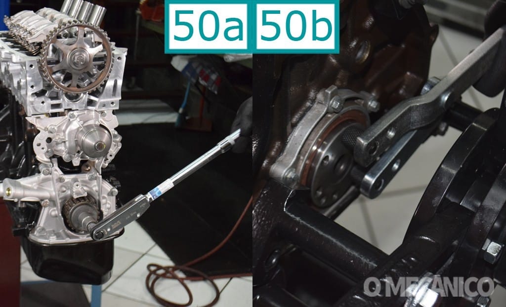 Obs: Use ferramenta apropriada para segurar o virabrequim. Neste caso, foi utilizada a ferramenta Raven 121011 (50b).