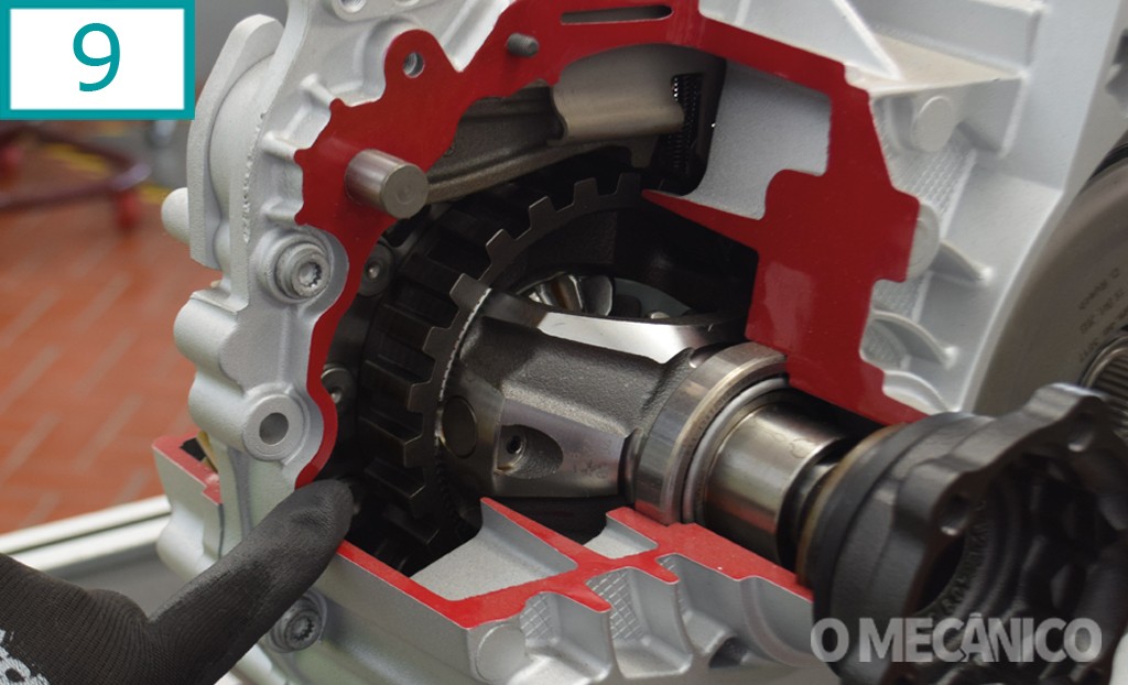 Ambos são engrenados diretamente ao diferencial (9), que envia o torque às rodas através de semieixos. Para permitir a marcha à ré, ainda há uma árvore inversora engrenada ao eixo primário nº2. O bloqueio do câmbio na posição Parking (“P”), assim como em um câmbio automático, é acionado mecanicamente por cabo em uma trava dentada no diferencial (10).