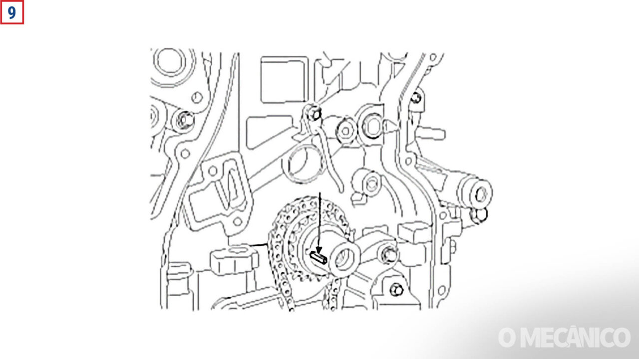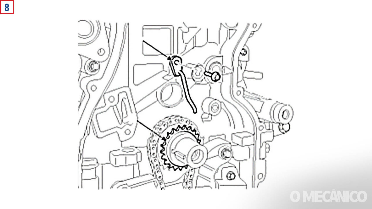 E) Instale guia da corrente de sincronismo (11) e aperte os parafusos com 1,2 kgfm.