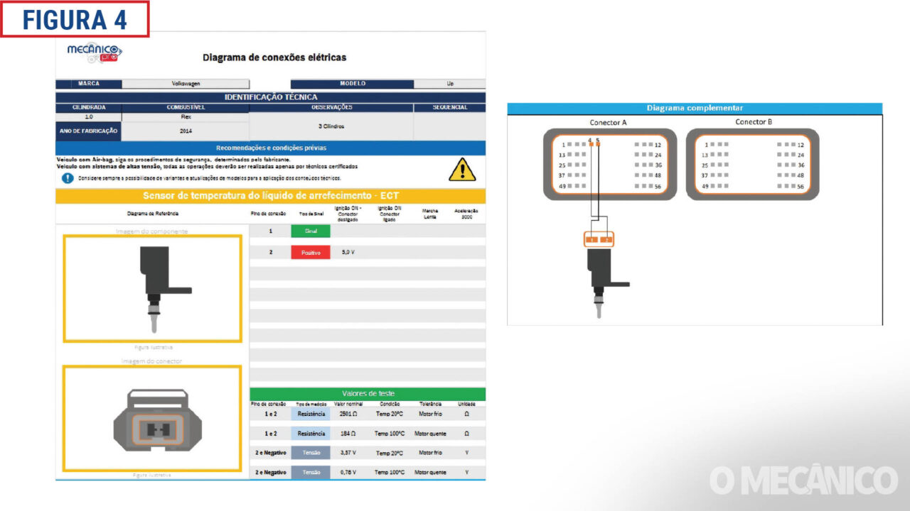 O lógica de medição do sensor é muito simples; o mesmo recebe 5 volts de referência, e esta tensão, será afetada pela própria resistência do sensor; ou seja, entram sempre 5 volts no sensor e retornam para a ECU, valores variáveis de tensão (conforme a variação da temperatura/resistência), sendo estes sempre inferiores os 5 volts; conforme mostra a ficha técnica do exemplo acima, estes valores de retorno de tensão oscilam entre 3,57 volts, e 0,78 volts, conforme a temperatura especifica na qual foi efetuada a medição.
