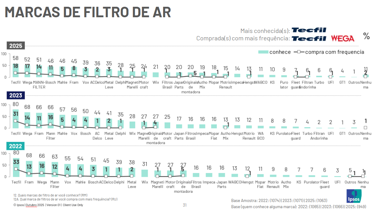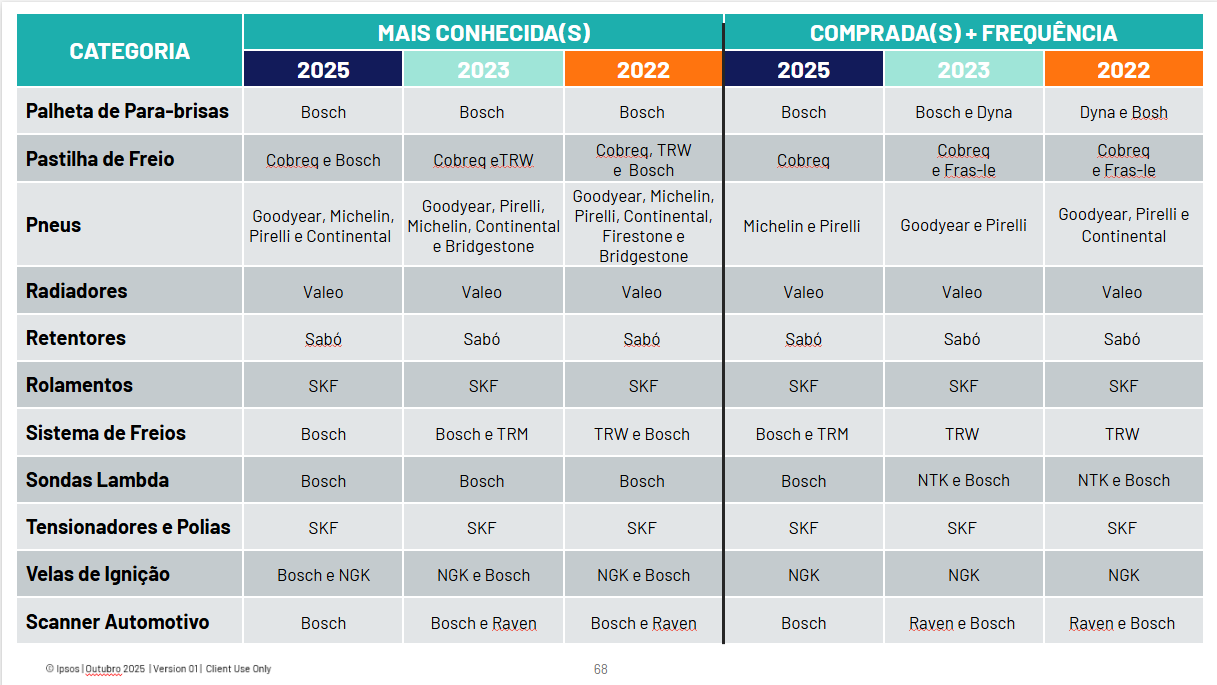 Levantamento da Revista O Mecânico em parceria com o instituto Ipsos-Ipec apresenta as marcas mais lembradas e utilizadas pelos profissionais em todo o Brasil