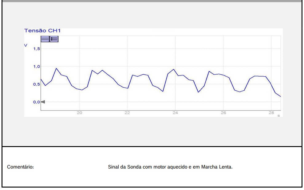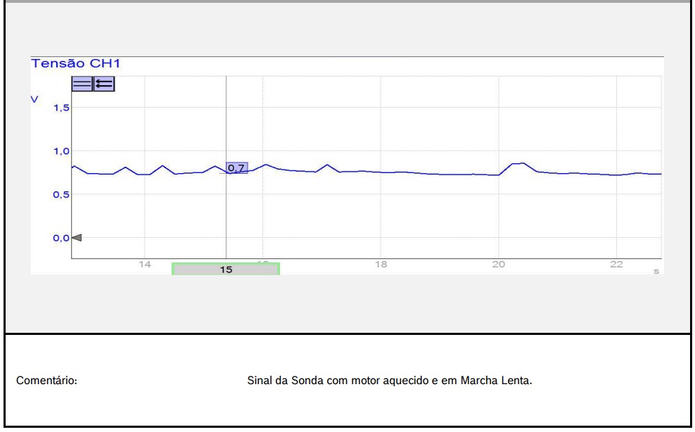 Para iniciar o diagnóstico, é preciso verificar os sinais obtidos nas sondas pré e pós catalisador, na condição de motor aquecido e na condição de marcha lenta, comparando os formatos de onda obtidos no veículo testado com os valores de referência, conforme imagens abaixo.