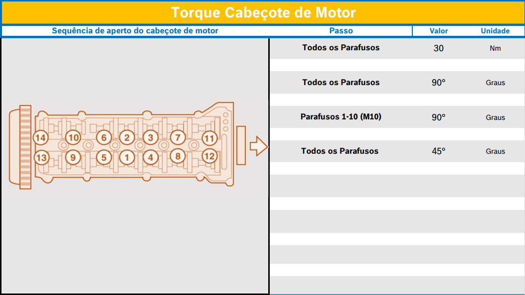 Dados de torque e procedimentos de montagem do cabeçote são válidos para veículos fabricados entre 2005 e 2011